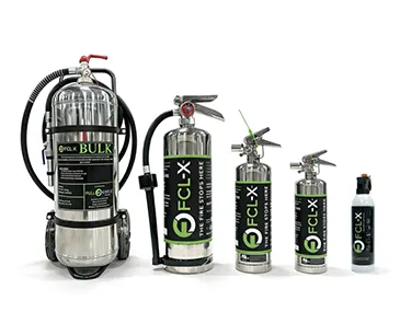 Lithium-ion battery incidents can behave differently than common household fires. FCL-X extinguishers are developed specifically for lithium-ion battery suppressant use and engineered to address risks associated with thermal runaway events.